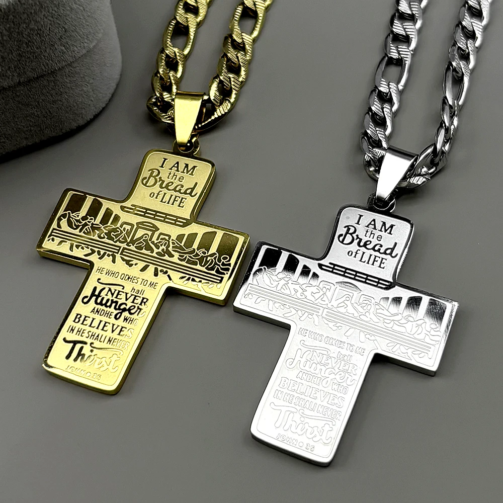 The Last Supper Jesus Christ Cross Pendant Necklace For Men / Women Stainless Steel Gold Colored Jewelry.